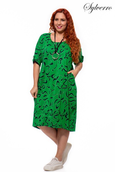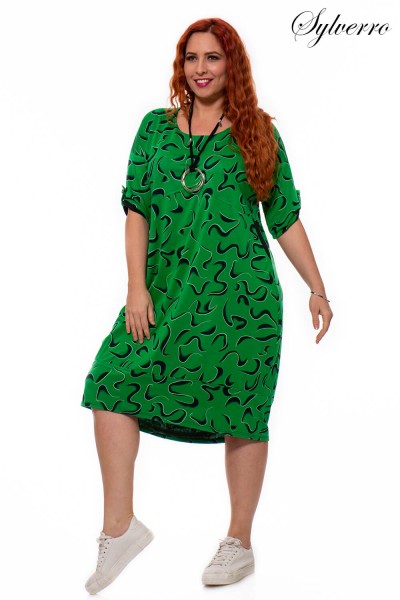 Rochie elastică, moale, bine potrivită pe care o poți purta chiar și cu pantaloni strâmți. Are un stil sportiv, dar îl poți purta oriunde datorită materialului de înaltă calitate, nu prea subțire. L-am făcut extra extra cu linii tăiate, urmează linia corpului în partea de sus, dar este lărgită la șolduri. Expansiunea este ținută împreună de cureaua de jos. Mâneci cu nasturi. O adevărată piesă de început de primăvară-vară. S (L-XL), M (2-3XL), L (4-5XL)