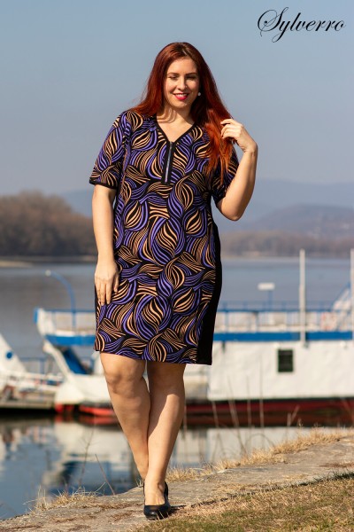 Rochie la modă, cu inserții laterale care slăbesc și o deschidere aparentă cu fermoar în față. Mâneci scurte, până la genunchi, din material cu model la modă. Nu este prea strâns, urmează liniile corpului. Nu curge din cauza materialului său subțire, astfel încât să vă simțiți confortabil în el toată ziua. Îl poți purta cu tocuri înalte pentru o ocazie sau cu adidași comozi pentru o plimbare de seară. O piesa cu adevarat versatila.
