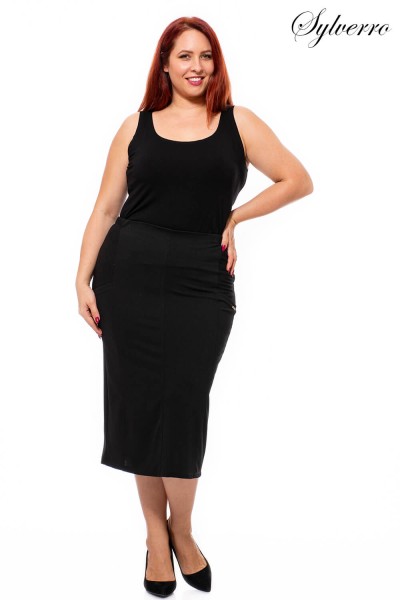 Fusta casual frumoasa, elastica, de grosime medie, cu fundul ingustat si cu fanta de acoperire la spate. Are o talie elastica care nu este in mijlocul fata. O fustă creion lejeră, cu multe linii tăiate. Lungimea de sub genunchi.