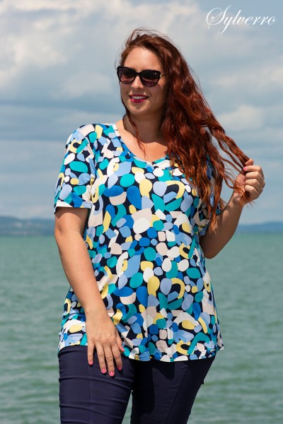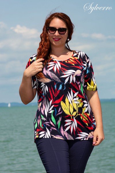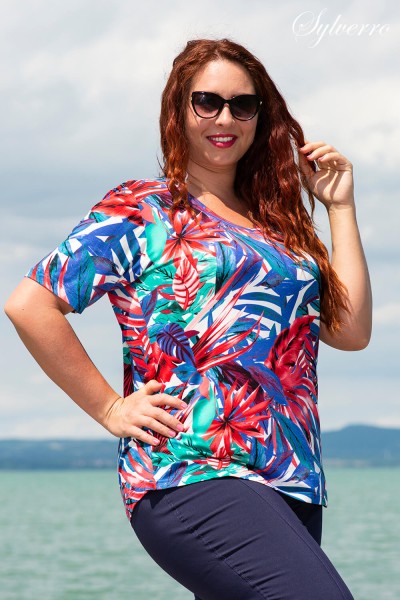 Un top plăcut și moale din viscoză, care va fi cu siguranță confortabil de purtat pe căldură. Are un decolteu în „V” în față, volane lejere în partea de jos și crăpături pe laterale. Mâneca acoperă brațul și lasă umărul liber.