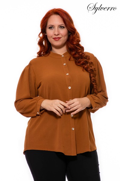 O bluză dintr-un material ușor de întreținut, plăcut, bine potrivit, care necesită foarte puțină călcare. Se inchide cu nasture in fata si mansete. O bluză frumoasă, cu un guler mic în picioare, mâneci lungi și o potrivire sub linia șoldurilor. Și-a încrețit mâneca cu un fir și cauciuc. La modă și elegantă!