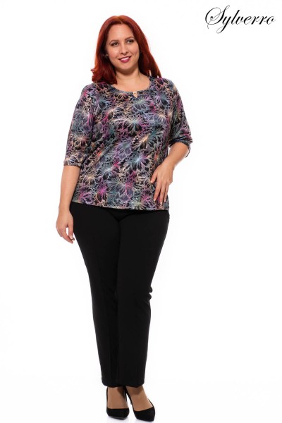 Fata este un decolteu rotund, cu un mic decor din piatra, iar varful nu este prea stramt. Un top cu mâneci 3/4 care urmează ușor conturul corpului și acoperă șoldurile. Nu este lipicioasă, este confecționată dintr-un material frumos, sofisticat, așa că o poți purta pentru orice ocazie. Suprafața sa este făcută și mai specială cu imprimare aurie.
