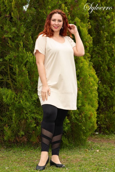 Rochie din bumbac de calitate superioara, cu buzunare laterale. Îl poți purta ca top lung sau ca rochie deasupra genunchiului. Umeri căzuți, decolteu în „V” și o potrivire ușor evazată la șolduri, care este îngustată de fundul croit. Cu o notă de panglică la modă în partea de jos.
