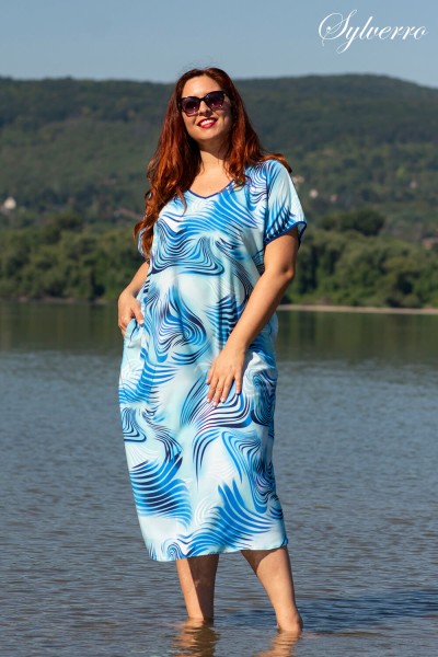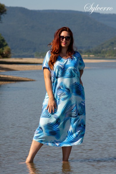 O rochie lungă cu linii lejere, confecționată din materiale naturale, confortabilă chiar și pe căldura verii. Poți să-ți bagi mâinile în buzunare și în timp ce mergi pe apă. Are umerii căzuți, dar acoperă părțile mai problematice ale brațelor. Disponibilă în trei mărimi: Small (L-XL), Medium (2-3XL), Large (4-5)