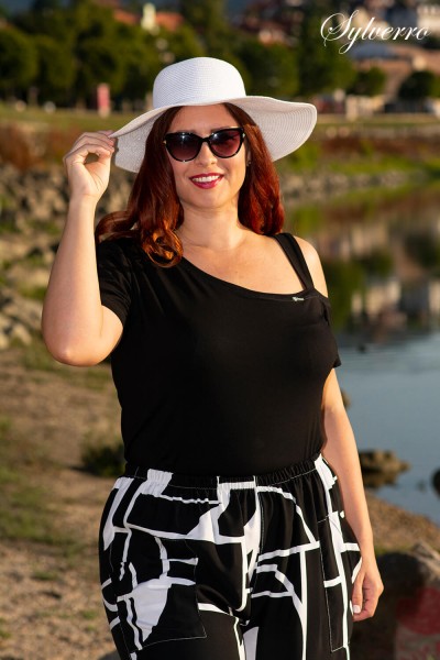 Top din viscoză, elegant și la modă, cu elastic, acoperă până la șold. Lasă liber un umăr, în timp ce breteaua sutienului este acoperită de o inserție croită. Foarte elastic, confortabil de purtat, va fi cu siguranță o piesă vestimentară de succes.