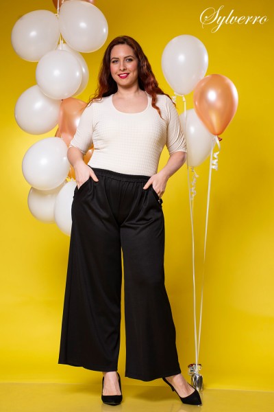 95 % poliester, 5 % lycra. Material de baza elastic, placut, cadere fluida, nu se muleaza pe corp. Se spala usor, nu se sifoneaza, isi pastreaza forma si culoarea dupa spalare.
